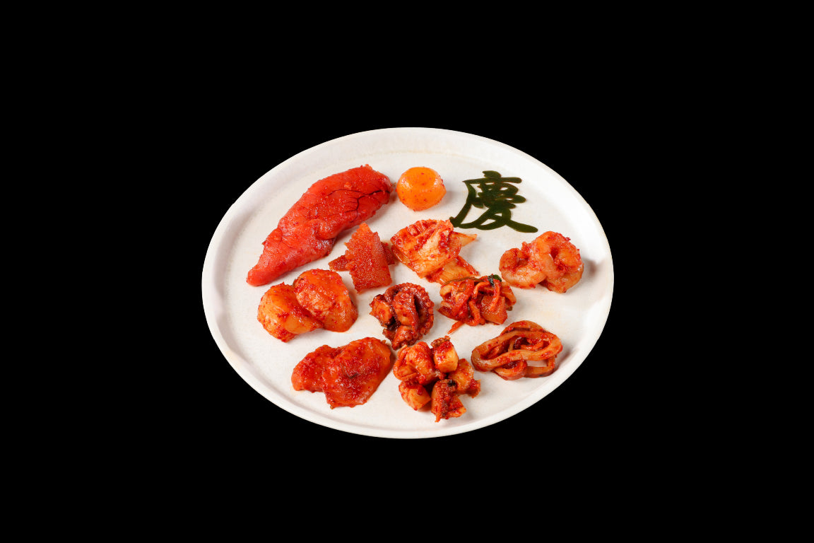 「お正月に慶のキムチが食べたい」「お年賀として贈りたい」そんな声にお応えして、数量限定80セットをご用意しました。特別仕込みのため、12月30日(火)に出来立てをそのまま発送いたします。今年は、世界記録達成「応援ありがとう」の気持ちを込めて特大明太子をおまけ、なんとあわびは増量!さらに今回は、ご購入者全員に “キムチにかけるごま油” の新春プレゼント付き!